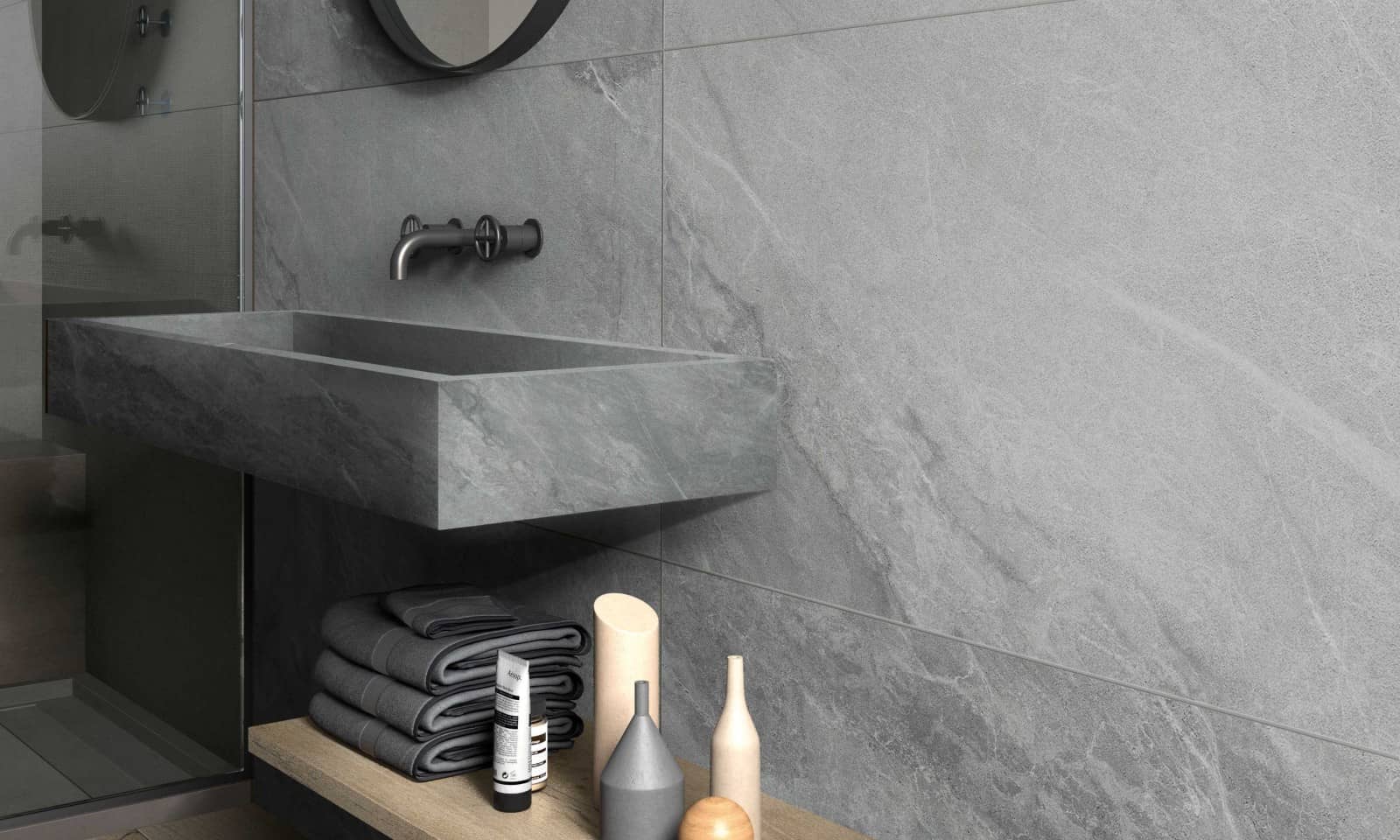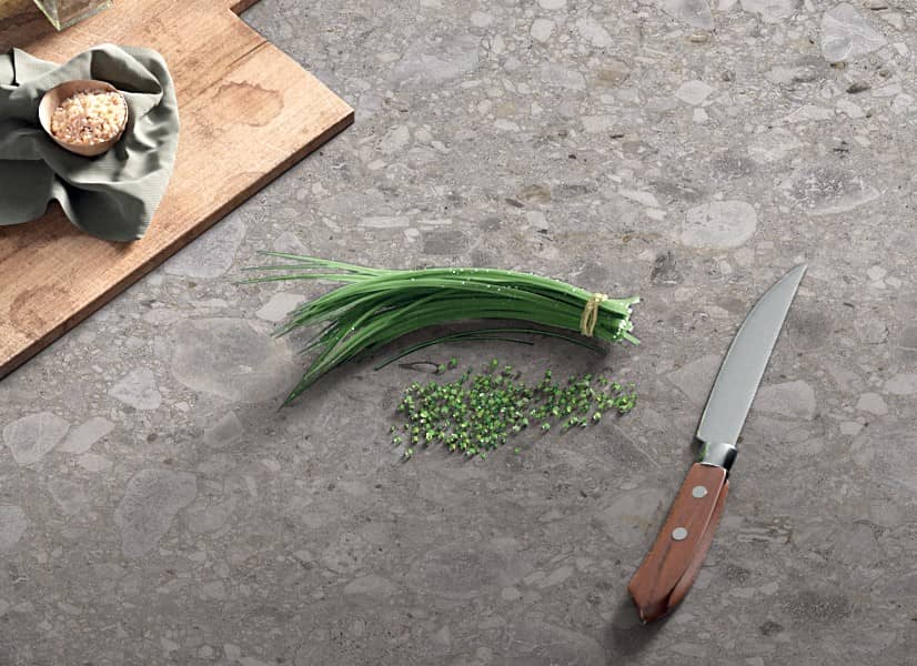 Les grandes dalles céramiques MATERIA représentent une sélection de grandes surfaces à fort contenu technique, disponibles en épaisseurs de 20 mm et 12 mm, et 6 mm, en ligne avec les tendances et les besoins du bâtiment contemporain, pour satisfaire les professionnels qui opèrent dans de différents domaines de la conception. Les grandes dalles, par leurs caractéristiques techniques, se prêtent à la réalisation de sols en grès cérame pour des espaces résidentiels et commerciaux, au revêtement de grandes surfaces intérieures et extérieures (façades ventilées), jusqu'à la création d'éléments d'ameublement et de plans de travail pour des salles de bain et des cuisines.